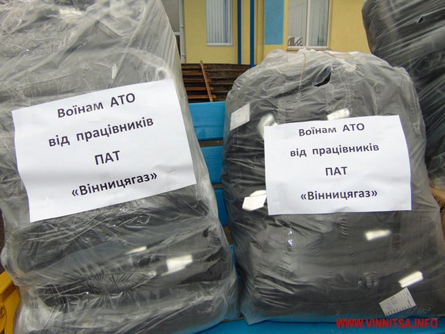 Зазначимо, що 29 січня колектив ПАТ «Вінницягаз» передав 15 «буржуйок» в зону АТО. Ще 5 отримали бійці військової частини в м. Гайсин10 лютого. Також Працівники компанії перерахували понад 50 тис. грн. допомоги військовим частинам та загонам територіальної оборони Вінницької області.