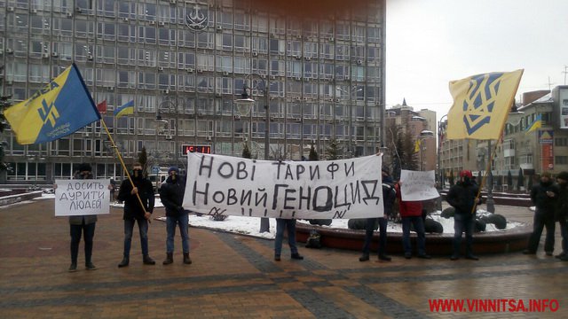 19 грудня близько 15 години під міськвиконкомом Вінниці зібралися десяток молодих людей. Вони розгорнули великий плакат із надписом: «Нові тарифи – новий геноцид».