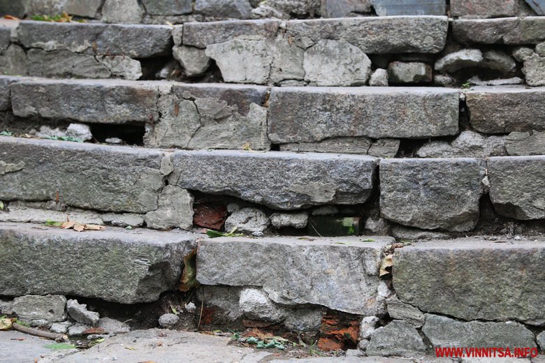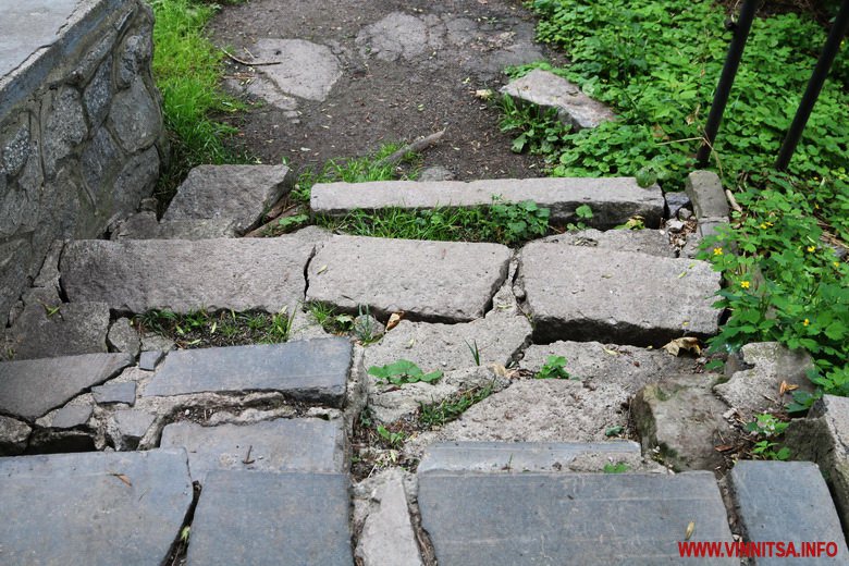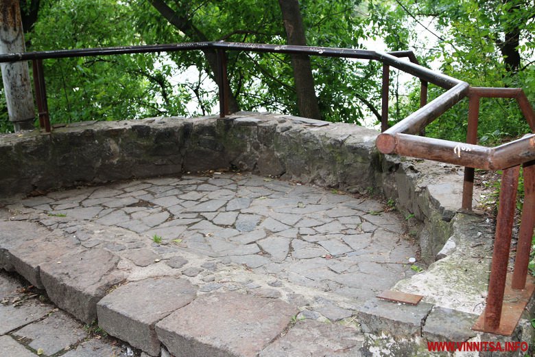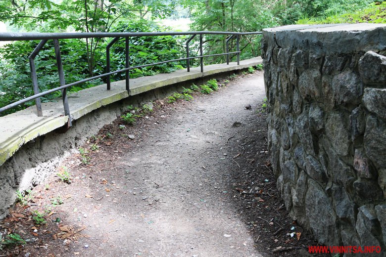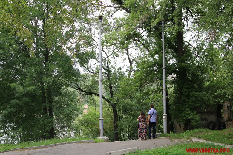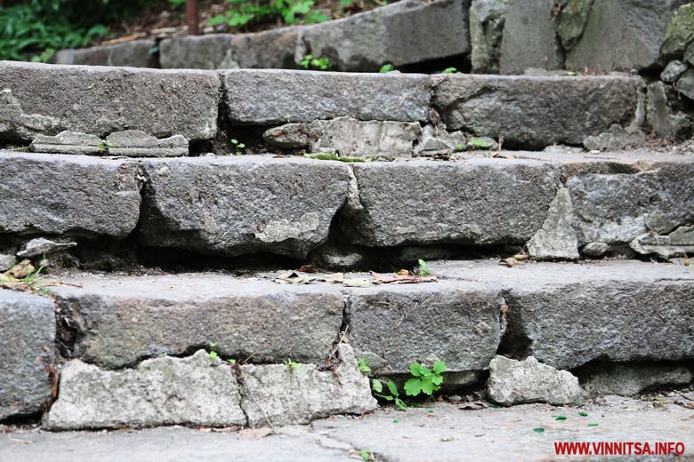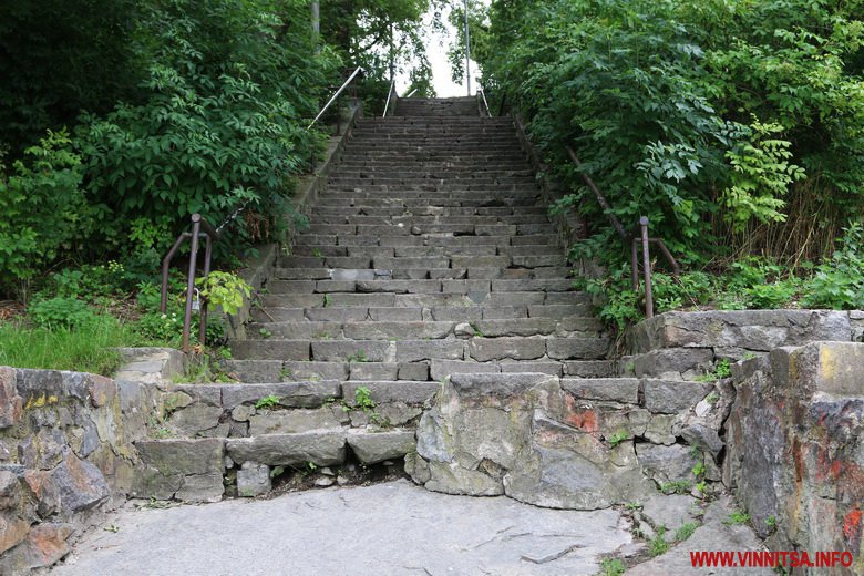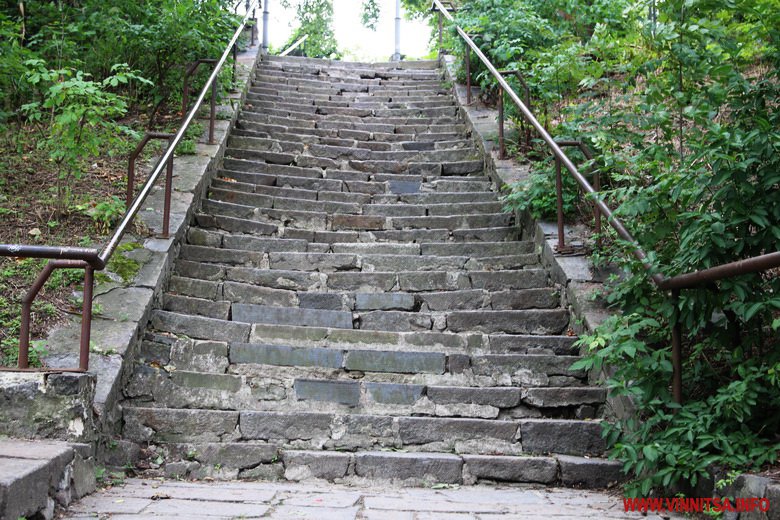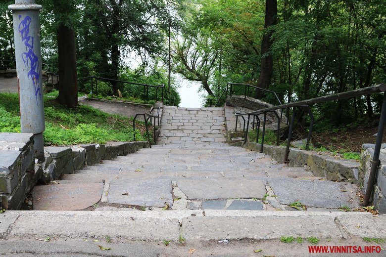 Спустившись головними сходами, які були спроектовані архітектором Г. Артиновим можна побачити неймовірні пейзажі, річку, кам’яні скелі, храми міста, Київський міст, рибалок, а ще безліч сміття, розмальовані залізні перила та лавочки.