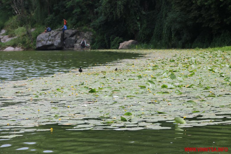 Пляж «Кумбари» повністю заріс травою. Під самим берегом вінничани облаштували собі місця для риболовлі.