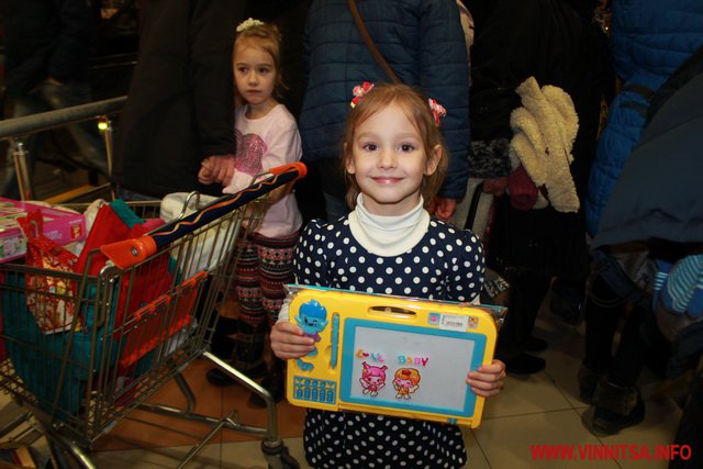 Як відомо, у «Скай Парку» з 1 по 19 грудня до дерева дитячих мрій, яке було вкрите долоньками дітлахів з їхніми мріями, небайдужі вінничани приносили подарунки на свій розсуд та по своїм можливостям. Сьогодні у День Святого Миколая ці подарунки вручили дітям. Оксана отримала санчата, Владислав, Микола та Олександр – машинки, Тетянка – пазли, Антон – м’яч, Тетянка – альбом, Денис – машину, Оксана – дощечку для малювання, Катруся, Аліна та Анна – ляльки, Ігор та Ксенія – конструктори «Лего», Світланка – посуд, Микола – іграшковий песик, Ніна – скарбничку.