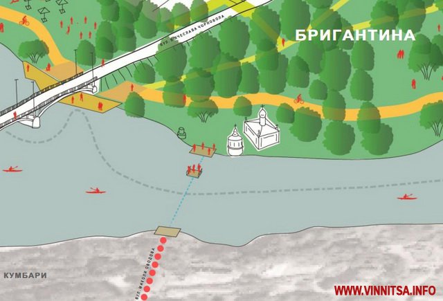 Проект передбачає відновлення історичної поромної переправи через річку Південний Буг, що з’єднує паркову зону «Кумбари» на правому березі та острів Бригантина на лівому березі.