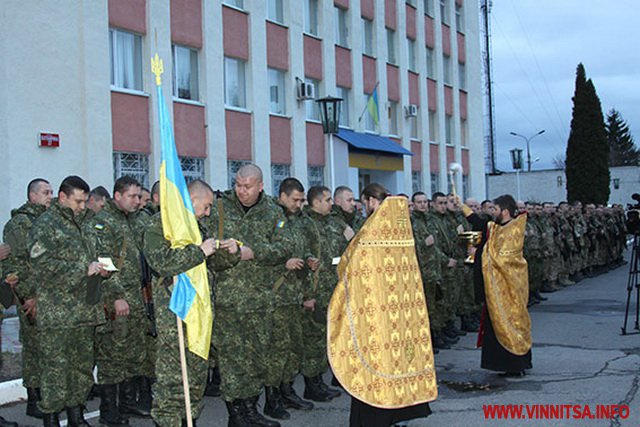 Поліцейських, відряджених в зону АТО, благословив настоятель храму святого великомученика Дмитрія Солунського отець Сергій. Він кожному дав оберіг та побажав якнайшвидше повернутися додому з миром та без втрат.