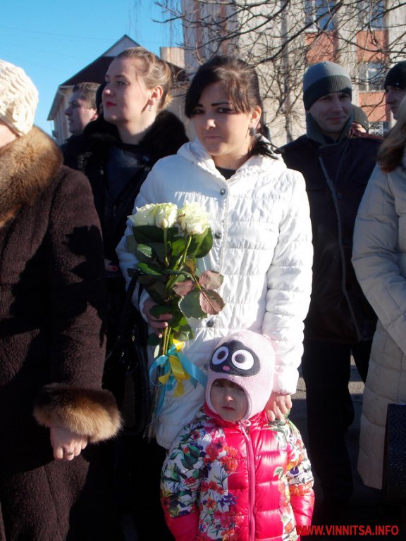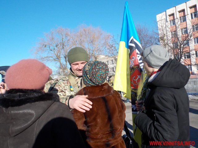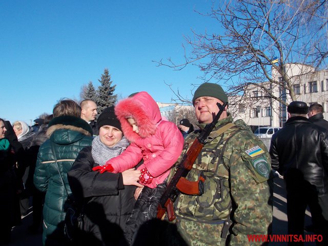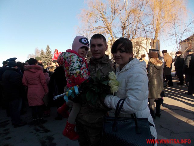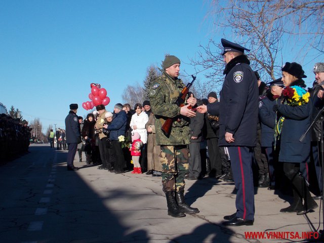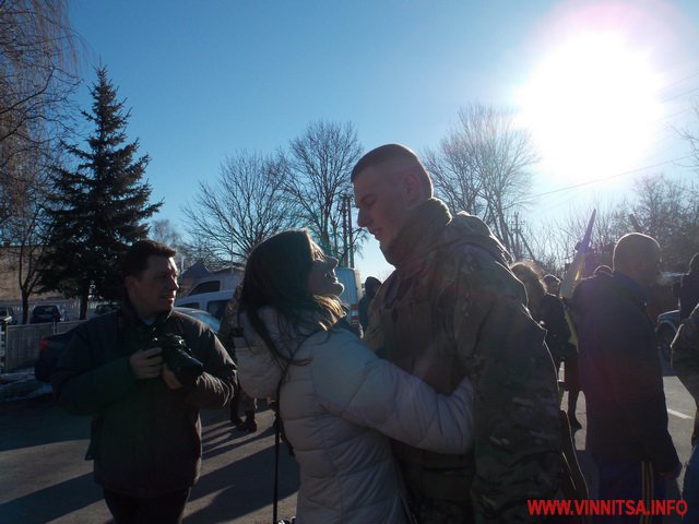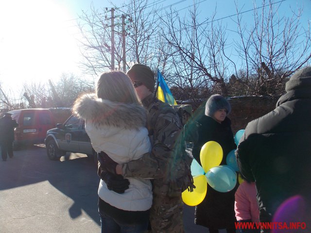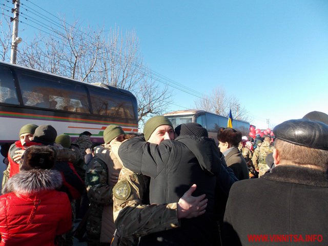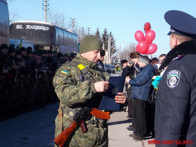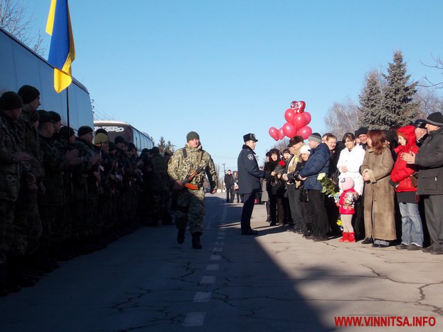 Сонячна погода, рідні та друзі зустрічали бійців з квітами, повітряними кульками та з посмішками на обличчях. Нажаль, з «гарячого» Сходу повернулися не всі… Від ворожого «граду» загинув 33-річний правоохоронець Денис Жембровський, якого 13 лютого поховали у Вінниці. Ще двоє отримали поранення та наразі проходять лікування. Тож зустріч з рідними, колегами і близькими розпочали з хвилини мовчання в пам'ять загиблого колеги.