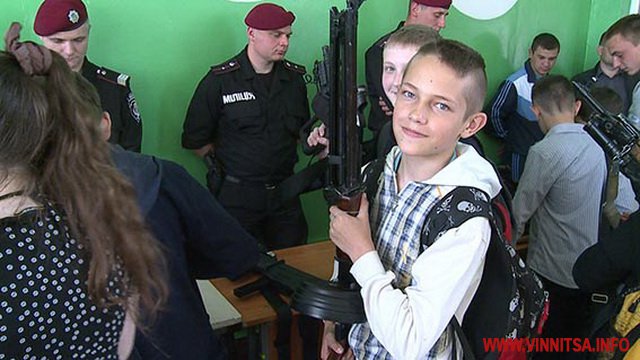 6 травня для учнів вінницької школи-гімназії №30 працівники роти міліції громадської безпеки особливого призначення провели урок мужності. Правоохоронці ознайомили дітей зі зброєю та засобами індивідуального захисту, роботою вибухотехніків та службової вівчарки Дорі.