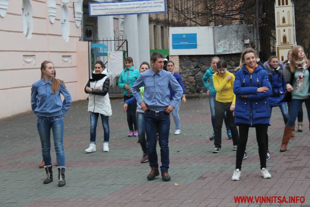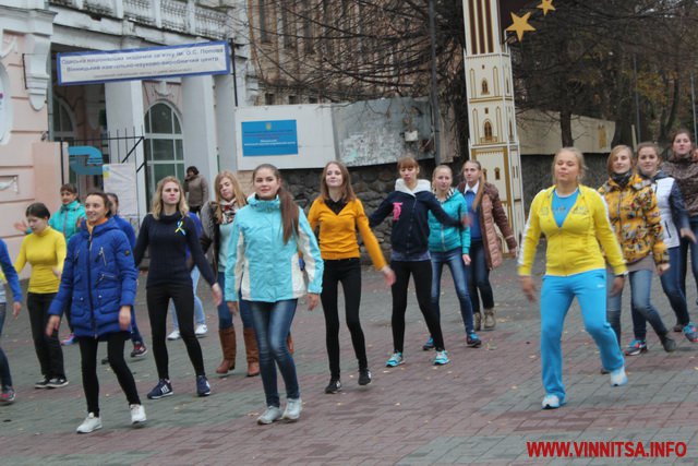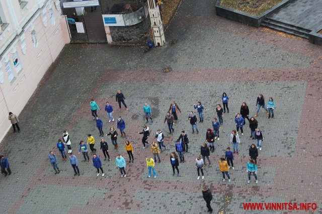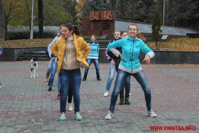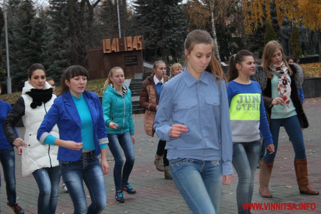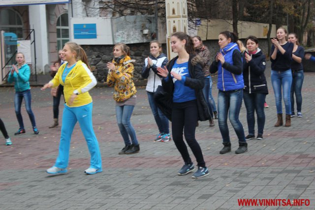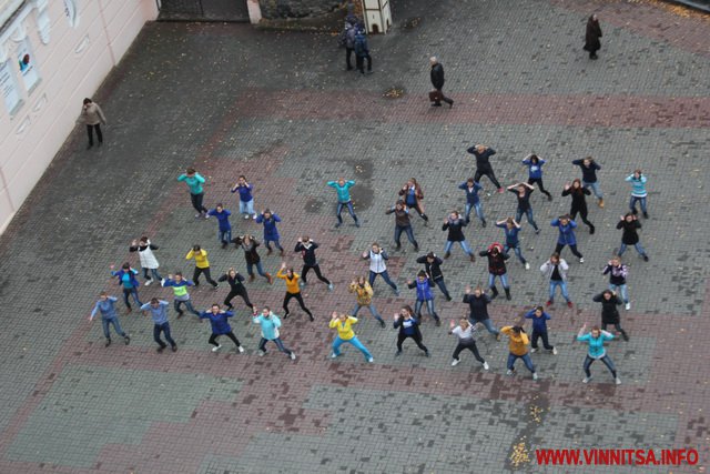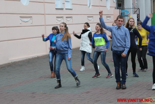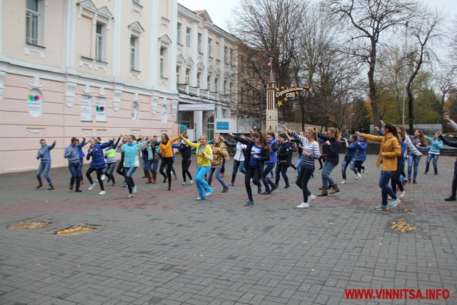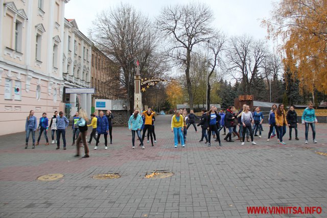 Близько 50 студентів з різних навчальних закладів Вінниці влаштували на площі запальні танці під уривки популярної молодіжної музики. Переважно брали участь у танцювальному шоу дівчата першокурсники.