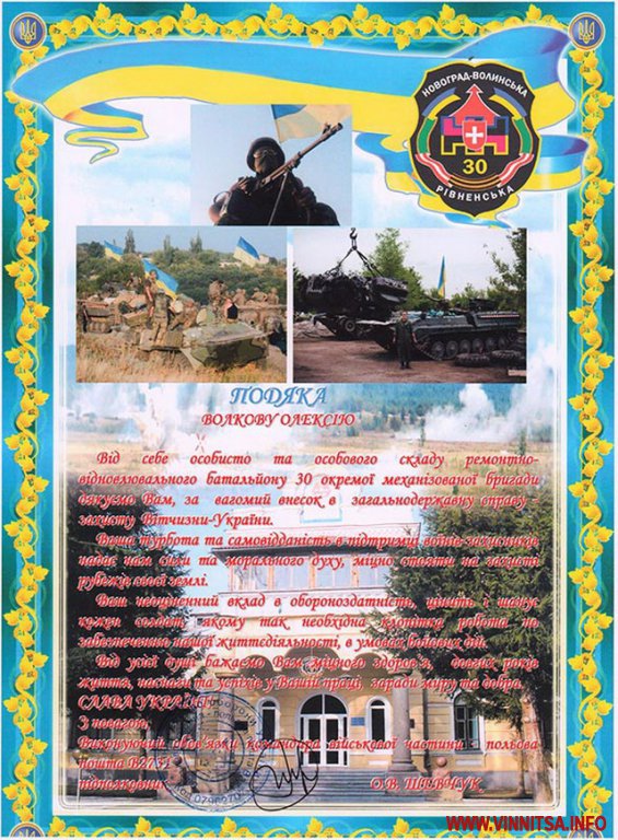 У Подяці написані чудові слова від імені воїнів на адресу вінницьких священиків-волонтерів: «Ваша турбота та самовідданість в підтримці воїнів-захисників надає нам сили та морального духу міцно стояти на захисті рубежів своєї землі. Ваш неоціненний вклад в обороноздатність цінить і шанує кожен солдат, якому так необхідна клопітка робота по забезпеченню нашої життєдіяльності в умовах бойових дій».