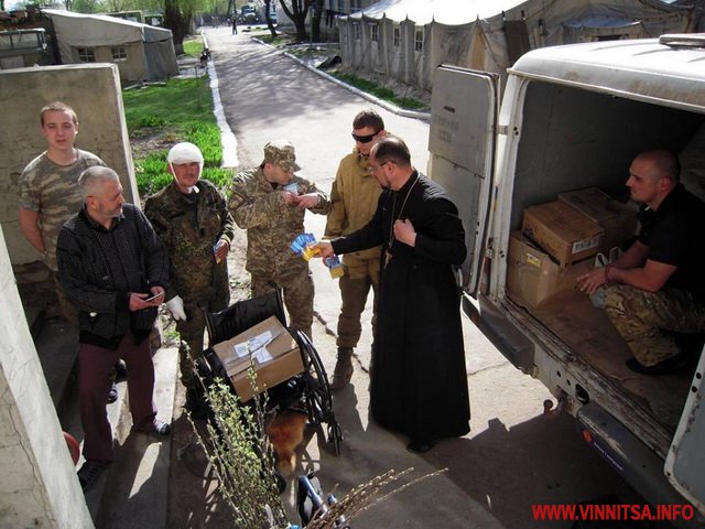 Священики-волонтери з Вінницької єпархії УПЦ відвідали бійців у Верхньому Торецькому, Авдіївці, Констянтинівці, Попасній, побували у військовому госпіталі у Красноармійську, та у Сєверодонецьку, куди незабаром має бути переведений 59-й мобільний госпіталь зі Сватово.