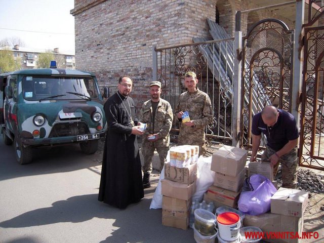 Цього разу продукти для військових збирали парафіяни храмів сіл Хижинці, де настоятелем є ієрей Ілля Собцев, Сокиринці, де парафію очолює протоієрей Віталій Дахновський, та Оленівка з архімандритом Агеєм (Поліщуком) на чолі. Підключилися до збору допомоги й громада храму с. Уланів Хмільницького району разом зі своїм настоятелем протоієреєм Ярославом Микитиним. Традиційно допомогу надали постійні благодійники воїнів підприємці Олександр Бедрак та Валерій Владика. Митрополит Вінницький і Барський Симеон передав кошти, за які були придбані засоби гігієни та одноразовий посуд.
