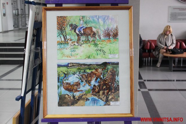 На виставці представлено більше 30 робіт у різних техніках: акварель, графіка тощо. Авторами картин є дві учениці Вінницької художньої школи: Вікторія Щекало та Олена Самійленко.