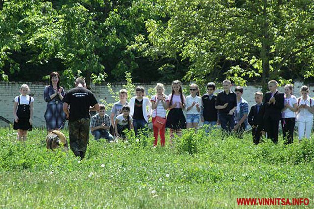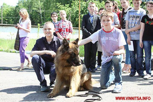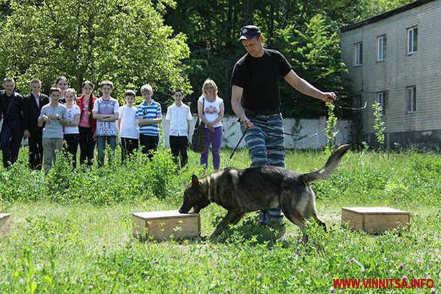 Учні вінницької школи № 34 завітали до кінологічного центру обласної міліції. Міліціонери показали дітям пошукові здібності службових собак, які шукають зброю, вибухівку та наркотичні речовини.