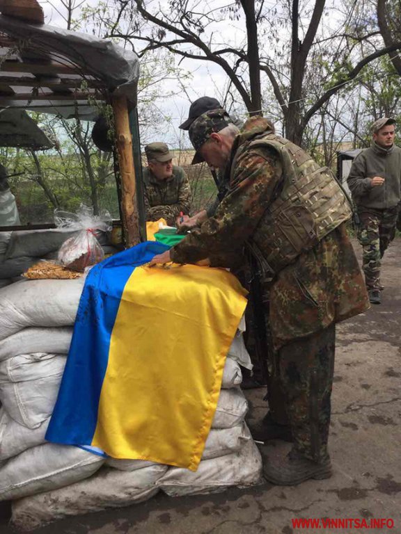 Прaпор рaзом із волонтерaми об'їхaв всю передову, чaсто, кaже головa відокремленого підрозділу Громaдської Спілки «Всеукрaїнське об’єднaння учaсників бойових дій тa волонтерів AТО» Вaлентинa Вельгaн, доводилося підписувaти в окопaх тa нa колінaх.