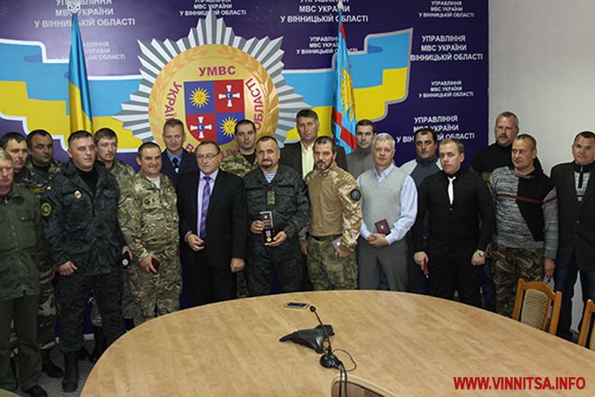 19 жовтня в обласному управлінні внутрішніх справ голова Вінницької облдержадміністрації Валерій Коровій та т.в.о. начальника УМВС Сергій Кримчук вручили державні нагороди бійцям добровольчих батальйонів Нацгвардії.