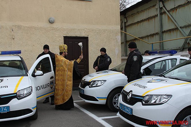 Автомобілі, які сьогодні виїдуть на перше чергування освятив настоятель храму святого великомученика Дмитрія Солунського отець Сергій, а поліцейські-охоронці отримали благословення на початок нової справи.