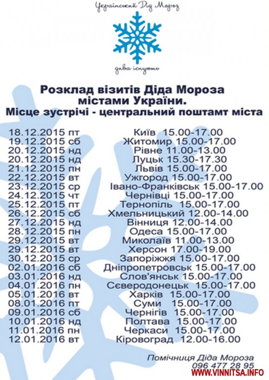 27 грудня з 12 до 14 години Дід Мороз завітає і до Вінниці.