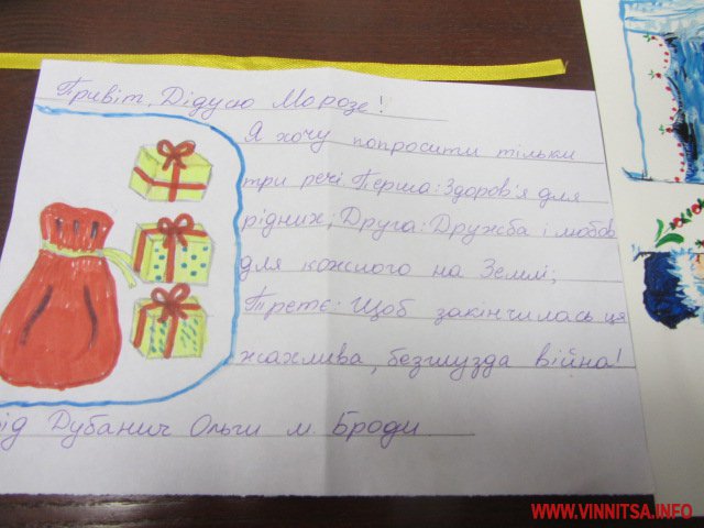 Всі українці вже можуть активно писати листи Діду Морозу як в письмовому вигляді, так і в електронному. Для звичайної пошти необхідно на конверті з листом наклеїти марку і відправити його в одному з відділень Укрпошти по всій країні. Всі листи, на яких буде вказана зворотна адреса отримають відповіді. Перші листи на Пошту Діда Мороза вже встигли написати вінничани, найстаршій дописувачці 63 роки, а наймолодшому всього 2 роки. Цього року запрацювала разом з фондом помічників Діда Мороза служба відповіді на листи.