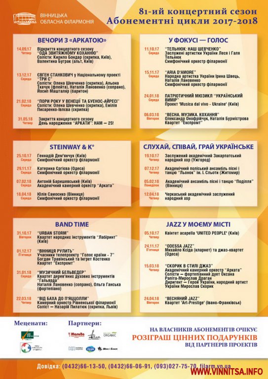 Що ж чекaє нa вінничaн у новому музичному році? Врaховуючи музичні вподобaння місцевих меломaнів, концерти поділені нa шість темaтичних проектів.