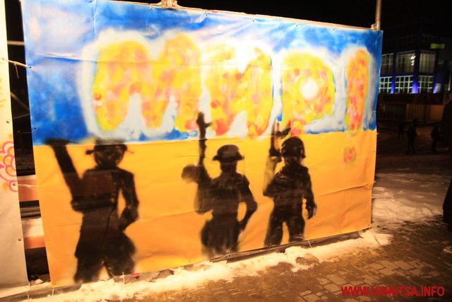 Роботи виконані на величезних полотнах в стилі вуличного графіті, разом із волонтерською допомогою, підготовленою за сприяння Вінницької міської Ради та Фонду Порошенка будуть відправлені на Схід, у звільнені міста для українських героїв.