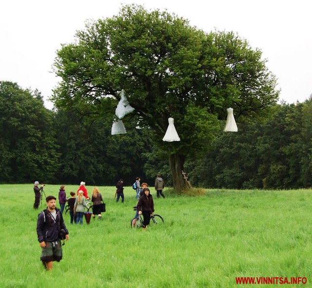 - Польський художник перетворив крону явора на вітрину жіночих шлюбних суконь, які світились з настанням темряви завдяки вмонтованим у них фотоелементам, і спонукали до роздумів, - розповідає Олександр Никитюк.