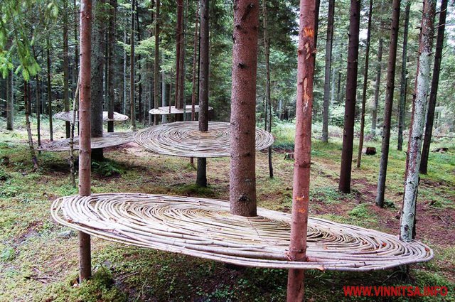- Польський митець з українським корінням представив оригінальний проект - серію дисків, сплетених з прутів навколо дерев, що вибудували ритм заглиблення об`єкту в лісову чащу, які дивують своєю витонченою естетикою на границі природного й рукотворного образів, - зазначає Олександр Никитюк.