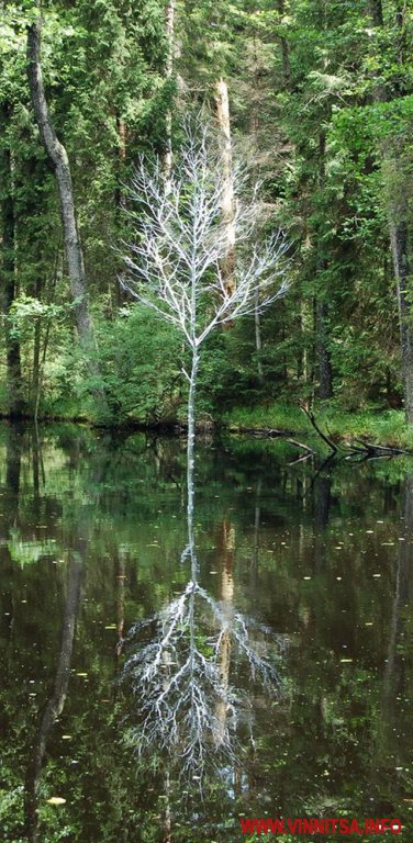 - Об’єкт Ярослава Лустих віддзеркалювався на «люстрі» лісового озера, - розповідає Олександр Никитюк. - Митець використав срібну плівку, якою покрив ціле велике дерево. Він встановив усе це посеред озера, що рефлексувало й змінювало навколишній краєвид дивним втручанням.