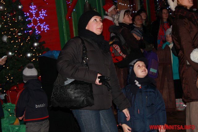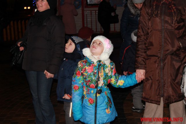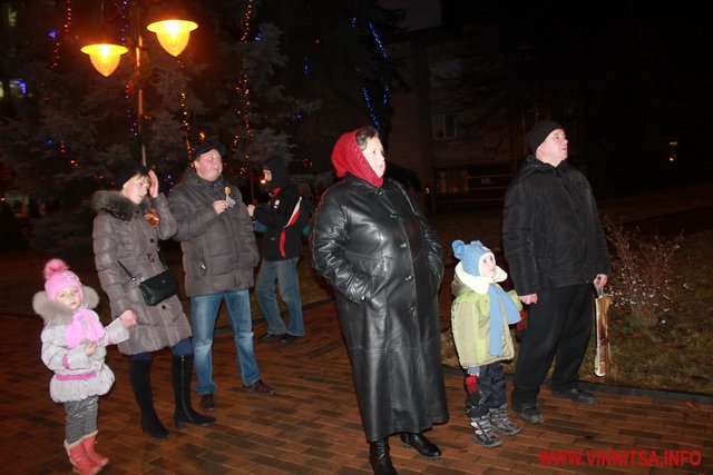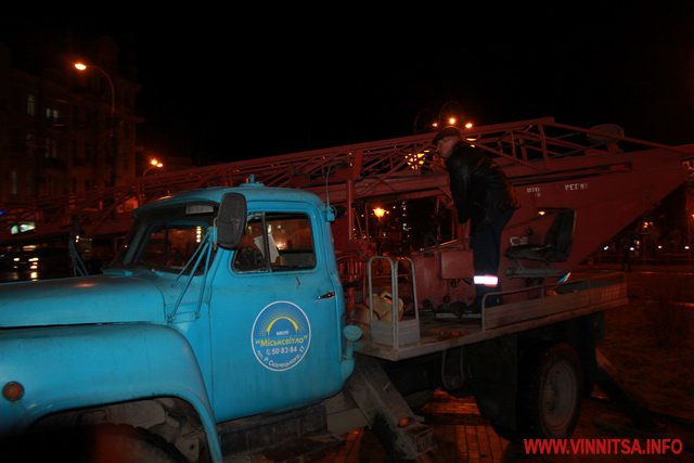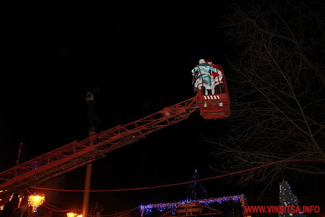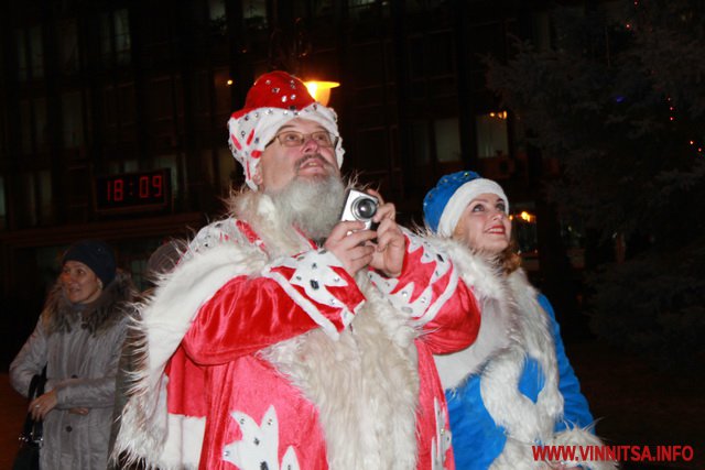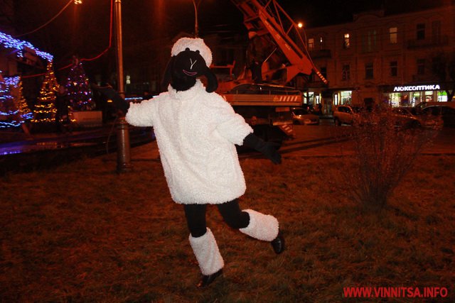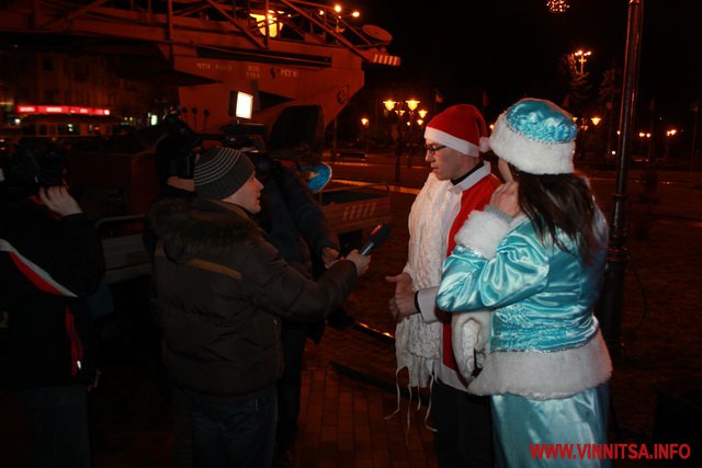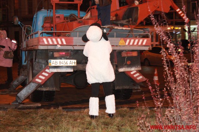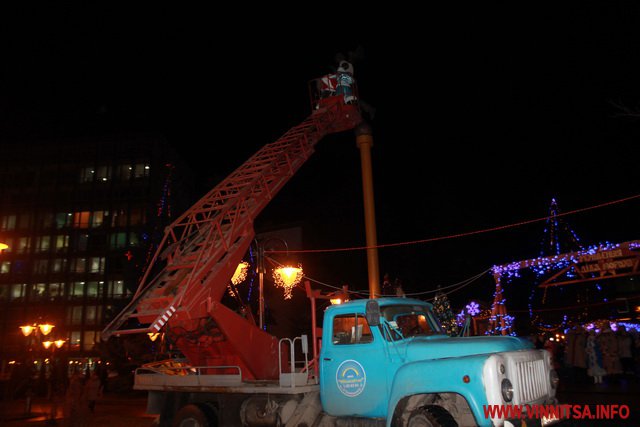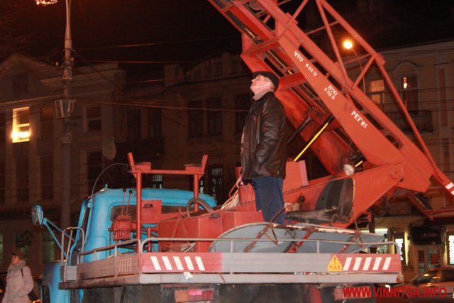 Під новорічні пісні, але не дуже з новорічним настроєм глядачі і звичайні перехожі з задертими головами спостерігали за дійством переодягання.