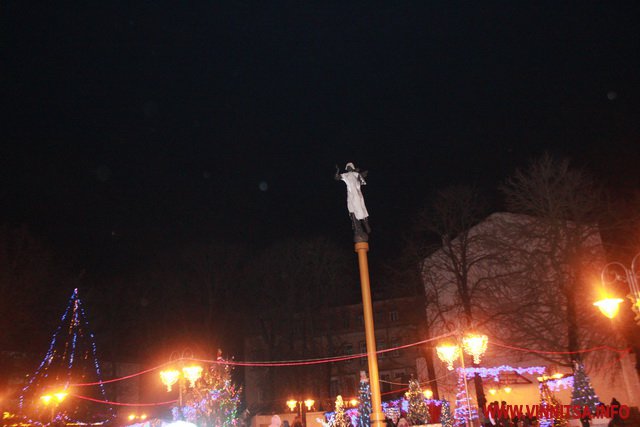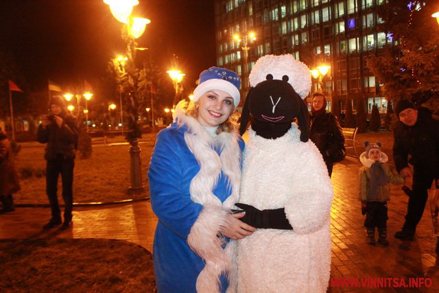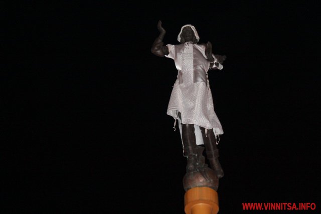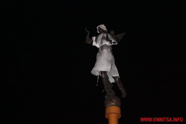 23 грудня у Вінниці пам’ятник Української Пісні, що на майдані Незалежності одягнули в костюм Снігуроньки.