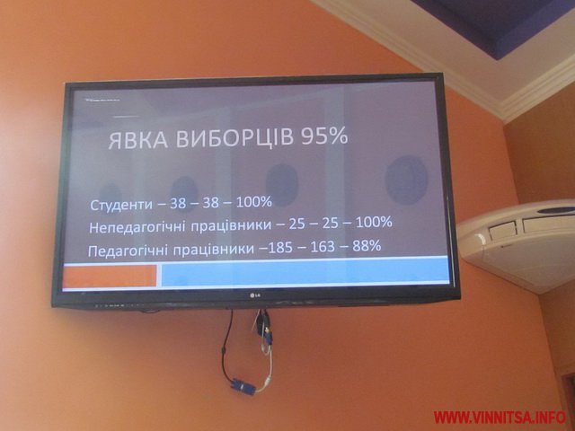 За Костянтина Войцехівського проголосували 226 осіб, що у відсотках становить 91,1%. Таким чином, Костянтин Войцехівський знову обраний директором Вінницького обласного комунального гуманітарно-педагогічного коледжу.