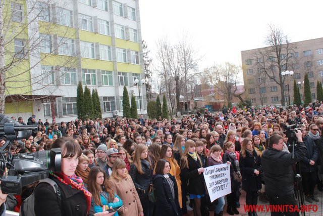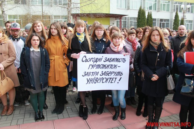 6 квітня колектив Вінницького державного педагогічного університету разом зі студентами вийшли на протест з приводу запланованої передачі гуртожитку Донецькому національному університету.