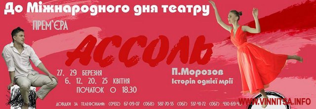 27 березня до Міжнародного дня театру у Вінницькому музично-драматичному театрі ім. М.К. Садовського відбудеться прем’єра вистави «Ассоль».