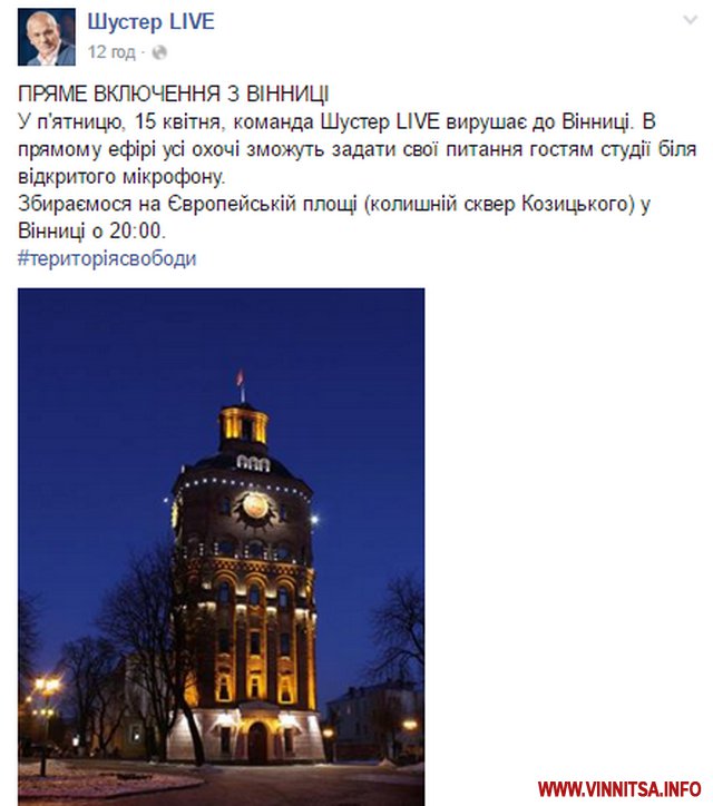 15 квітня до Вінниці завітає команда політичного ток-шоу Шустер LIVE.