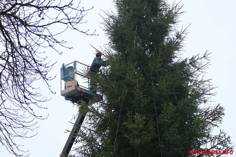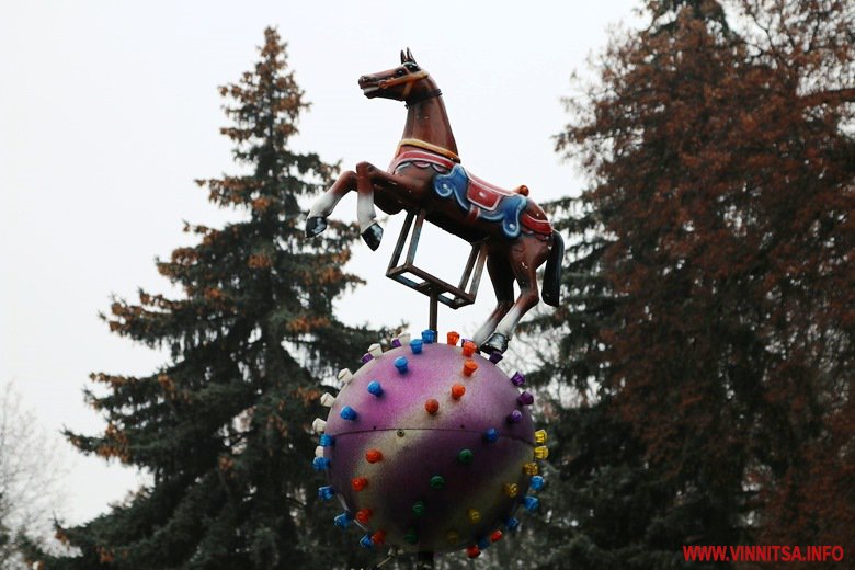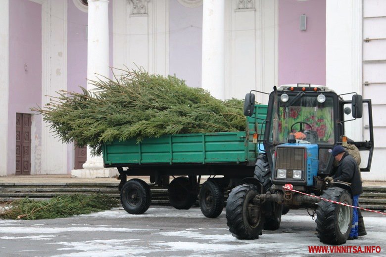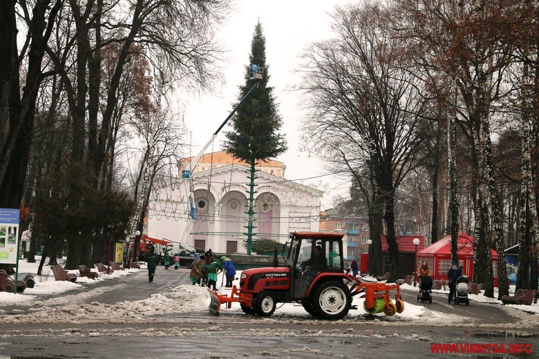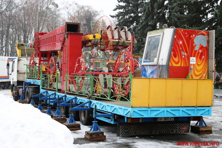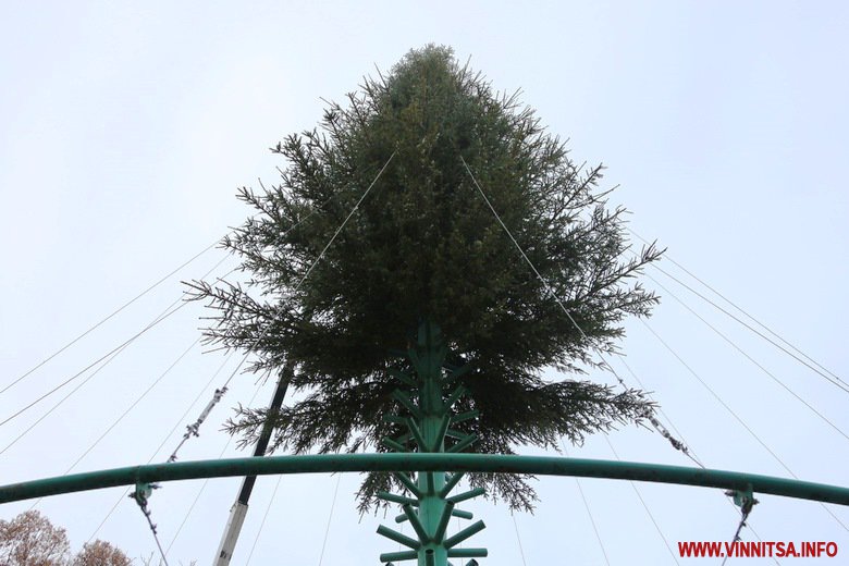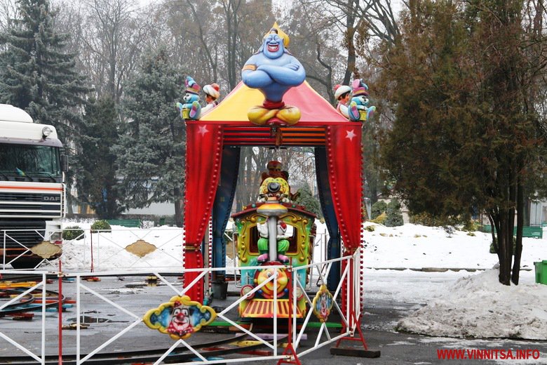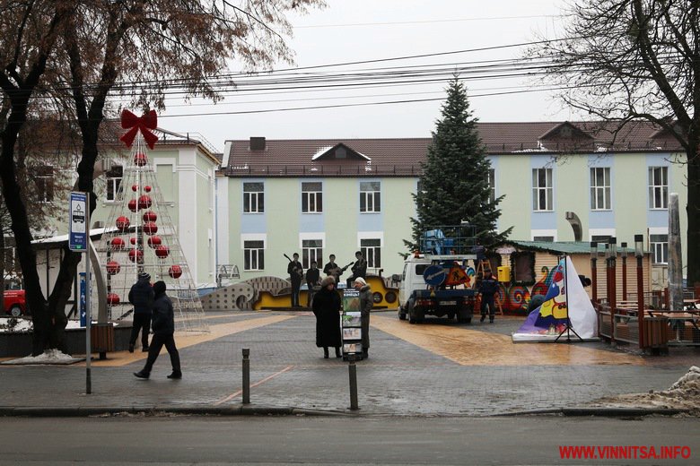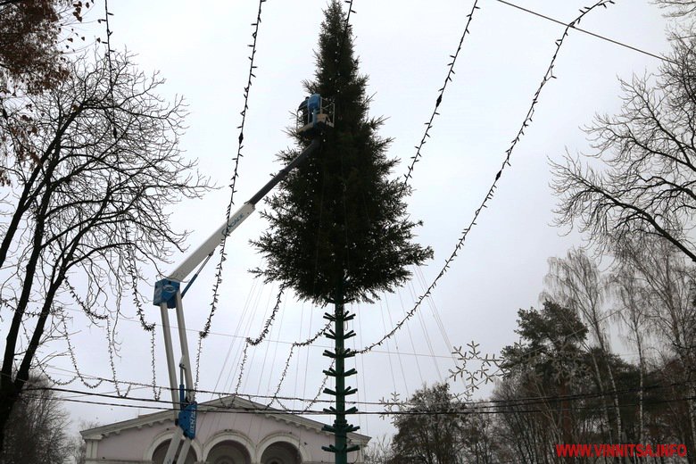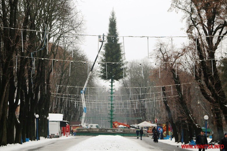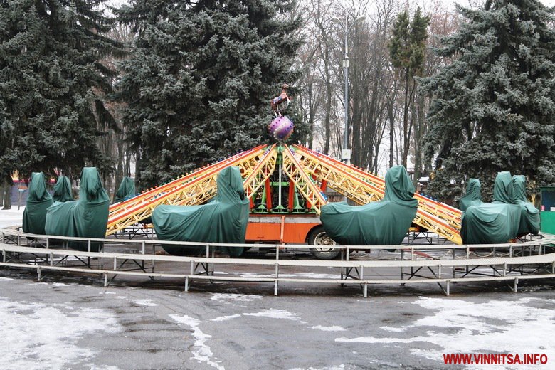 Вінниця готується зустрічати Новий рік. В місті тривають приготування до святкувань. У Центральному парку встановлюють головну ялинку – на половині каркасу вже прикріпили дерева. Біля фонтану розташували атракціони. Новорічні каруселі ще монтують.
