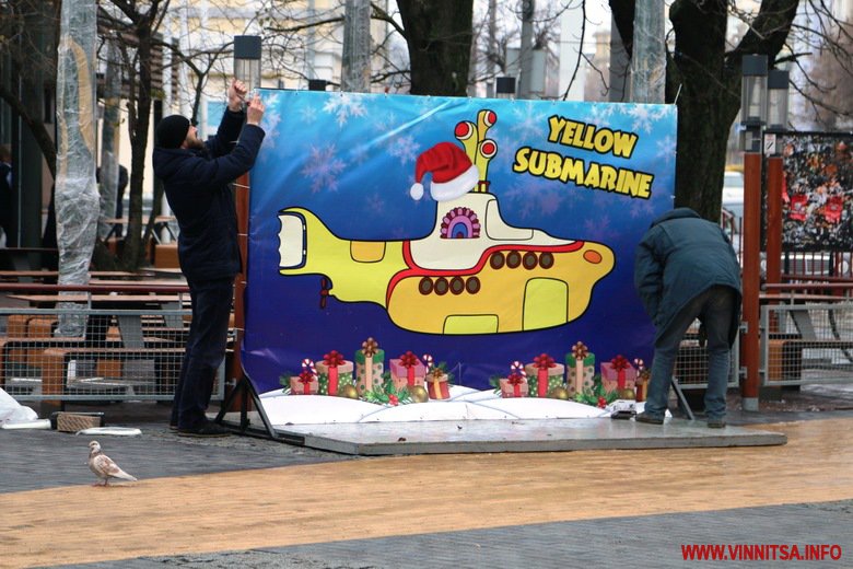 На площі «Ліверпуль» останні приготування перед відкриттям «Вінницької новорічної пошти», яке відбудеться 11 грудня о 16 годині. Вперше там показуватимуть мультфільми просто неба.
