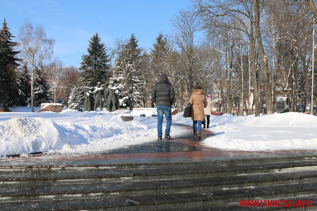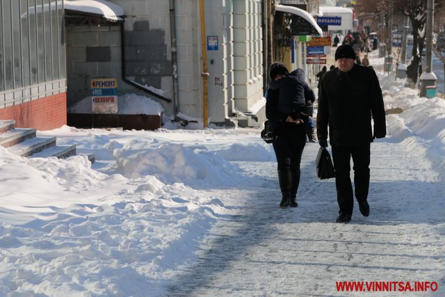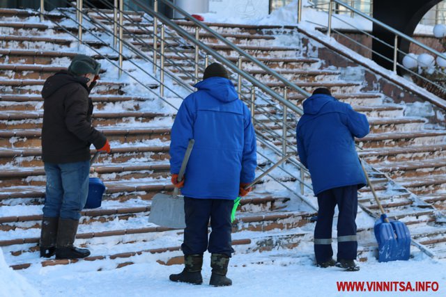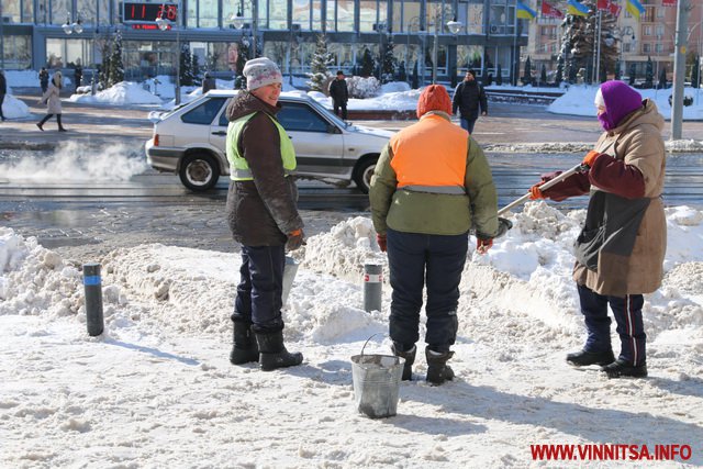 У Вінниці за минулу добу, 8 лютого, випала місячна норма опадів. Але вулиці міста розчищені, проїзд дорогами забезпечено. В дворах та прибудинкових територіях прогорнуті доріжки, а біля підприємств та магазинів прибиральники третій день працюють з лопатами.
