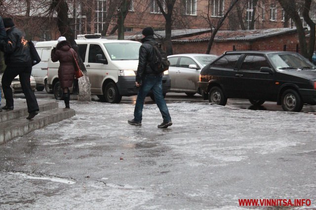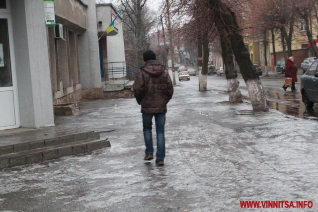 10 грудня ранкова Вінниця знову вкрита тонкою кригою. Ранкові добирання вінничан на роботу та навчання часто завершуються падіннями і травмами. Це вже третій день поспіль погода «радує» вінничан. Але рекорд звернень до медиків з травмами, на щастя, жителі Вінниці ще не побили.