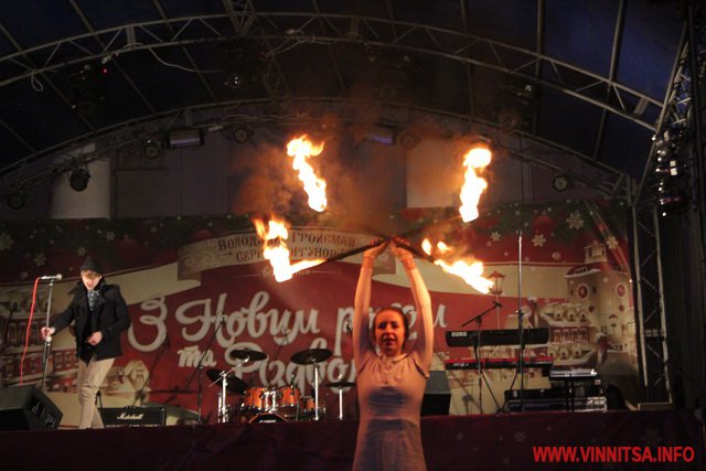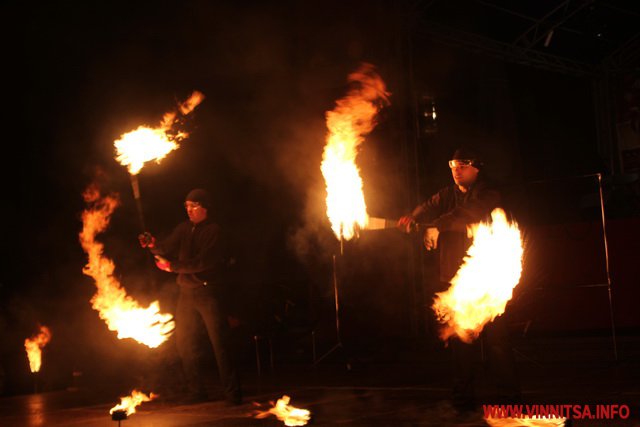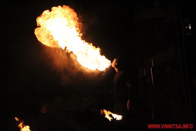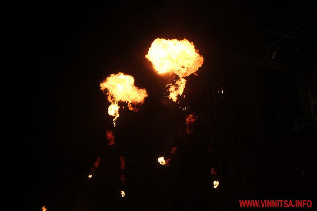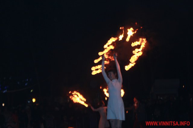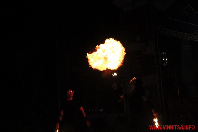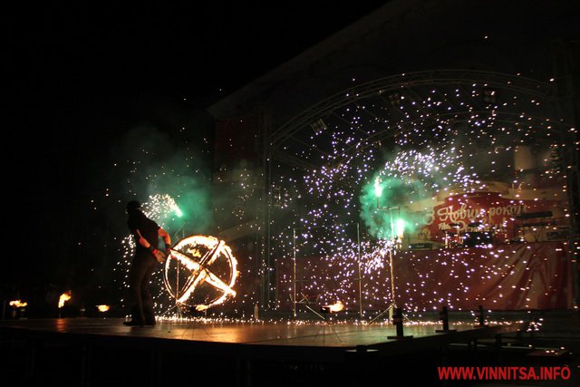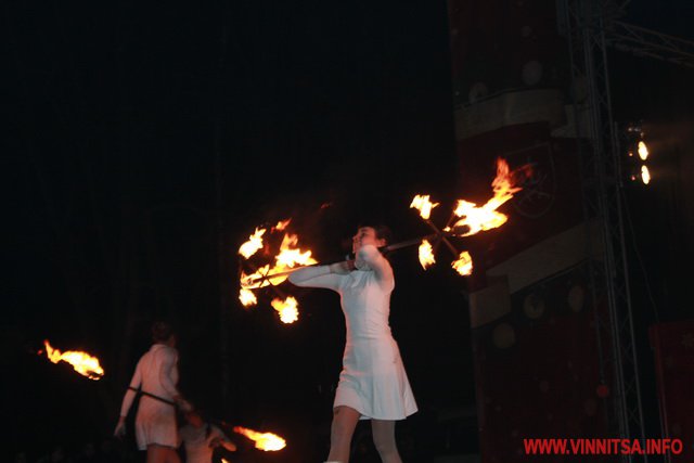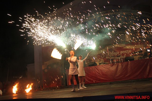 А потім був святковий концерт, під час якого вінничан розважали рок-гурти «LARUS», «BAND-R-BAND», «Серце Дженніфер». Також присутні на святі побачили аж два фаєр-шоу за участю вогняних театрів «EastFire» з Харкова та «КОТ» зі столиці. Ведучим свята був Костянтин Станіславський, який розважав гостей запальними танцями.
