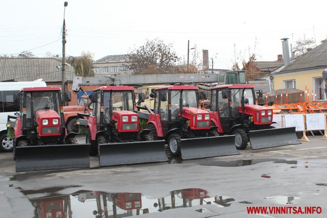 У Вінниці вже підготували спеціалізовану техніку для прибирання вулиць у зимовий період. Придбано 4 нових трактори малої техніки фірми «Беларус», які прибиратимуть тротуари міста, планується закупити ще 2 трактори, такої ж марки.