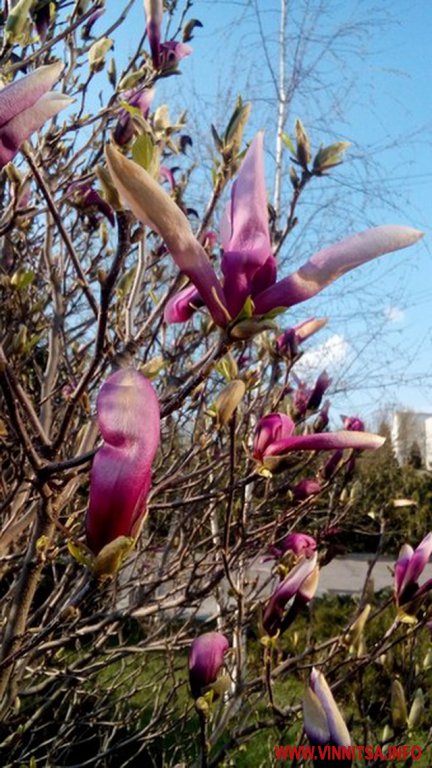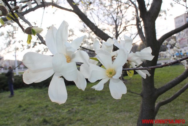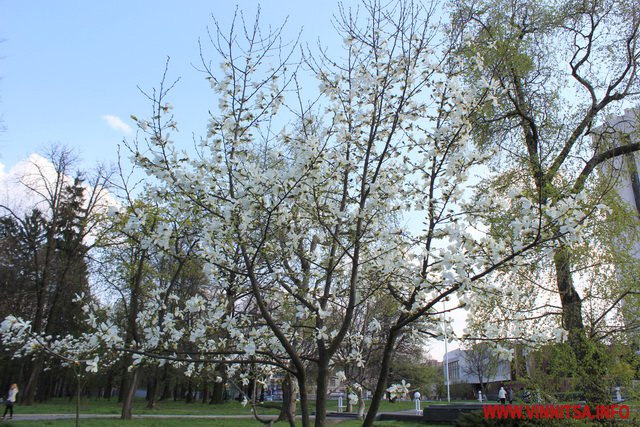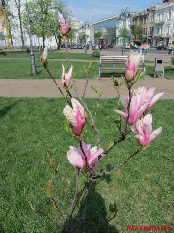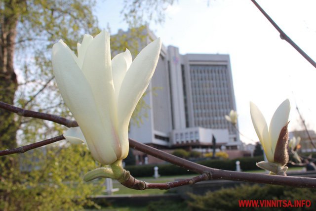 На вулицях Вінниці зацвіли ніжно-білі і рожеві магнолії, своєю неповторністю, яскравістю і оригінальністю вони привертають увагу вінничан та гостей міста. Також у Вінниці вже запустили кілька фонтанів у центрі.