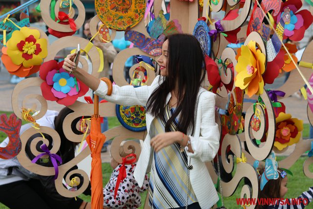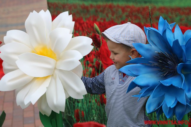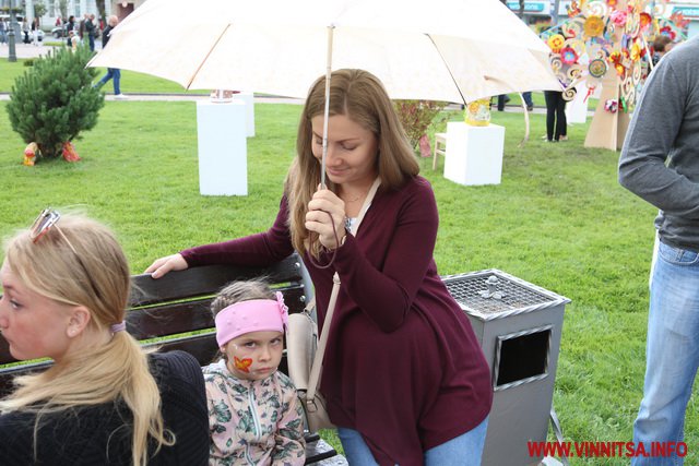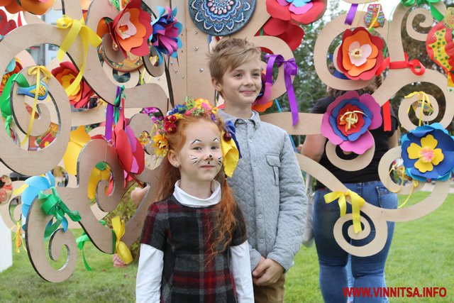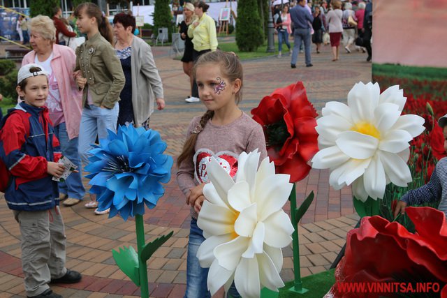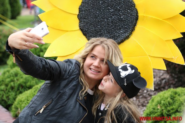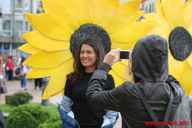 Ну і, звичайно, фотозони. Робити знімки на пам’ять можна з надписами «Я твоє сонечко», «Vinnytsia», у рамках формою телевізора та вікна. Біля української вишивки, зі сніпочками та велетенськими квітами.