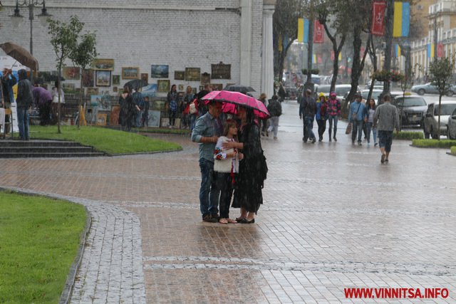 На жаль, погоді сьогодні не до святкувань. З самого ранку над містом темні хмари. А у розпал веселощів з неба пішов дощ.