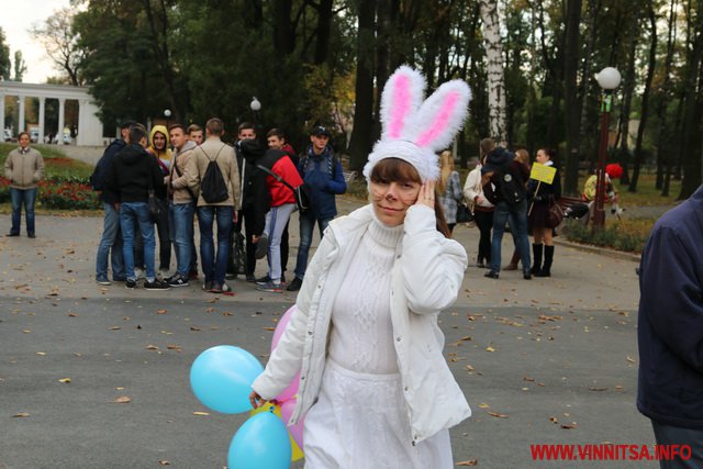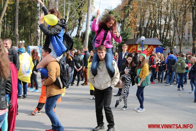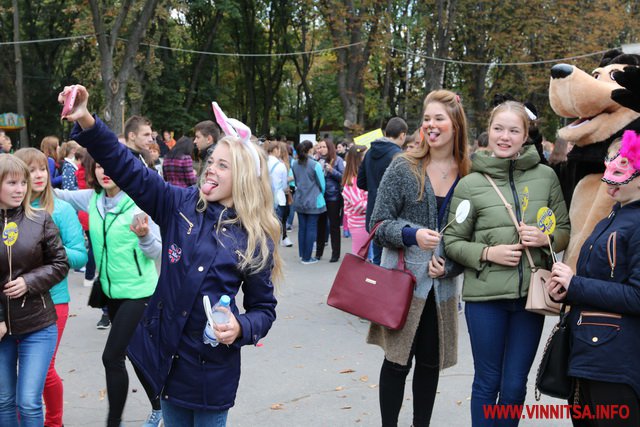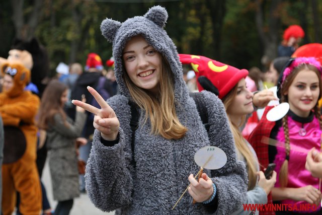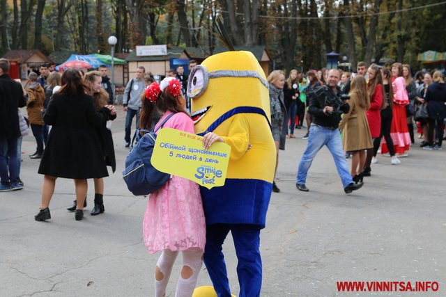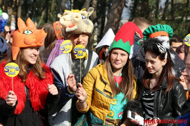 7 жовтня Вінниця святкує Всесвітній День посмішки. Центр міста перетворився на святковий вернісаж. Стартували веселощі від літнього театру, що в Центральному парку. Там зібралися сотні студентів, дітлахів і школярів. Молодь вдягнула кумедні карнавальні костюми.