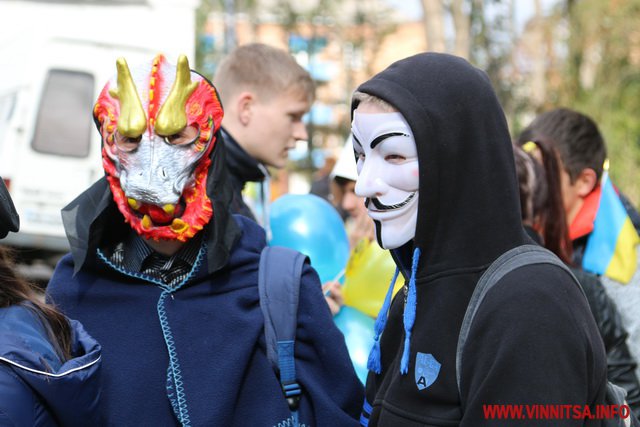 Близько 15 години молодь разом з ходулістами вирушила до Майдану Незалежності. Люди із захопленням зустрічали парад позитиву.
