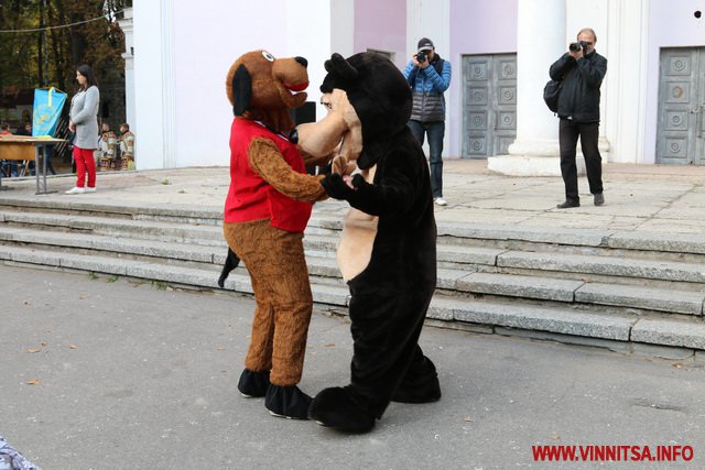 Майже годину вони розважалися під драйвові українські композиції: водили хороводи, танцювали, обіймалися і просто ділилися з оточуючими гарним настроєм. Улюбленцями вінничан стали велетенські смайлики та мультяшні герої.