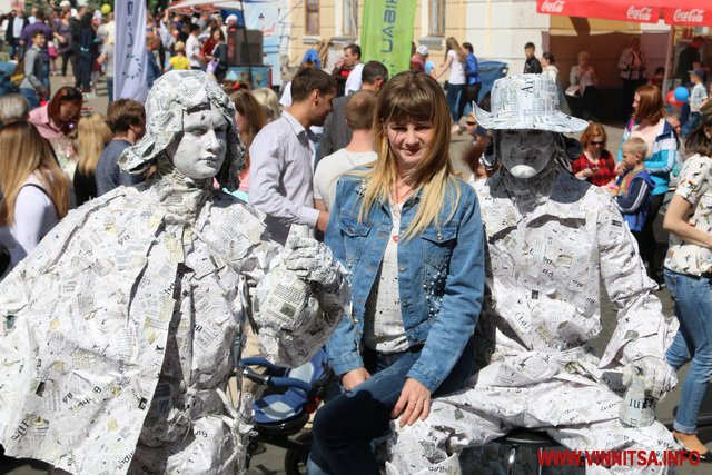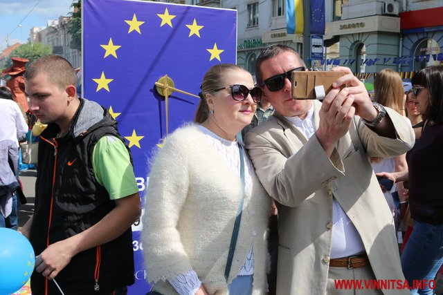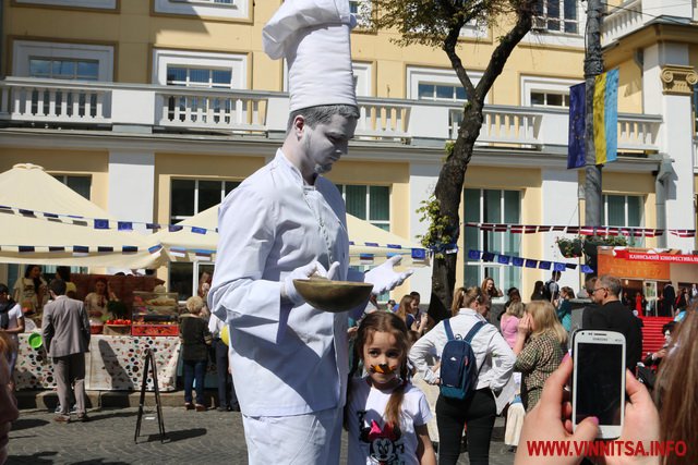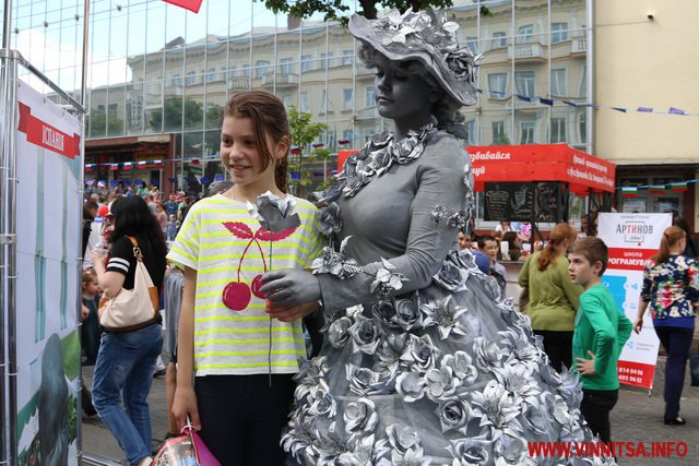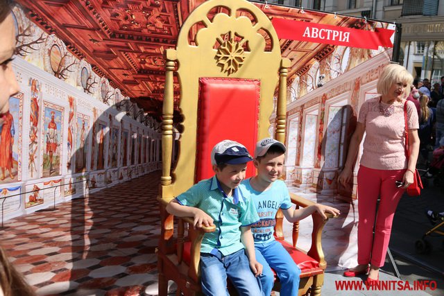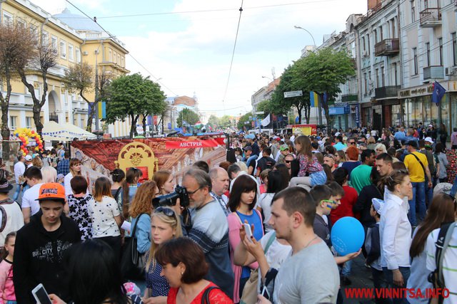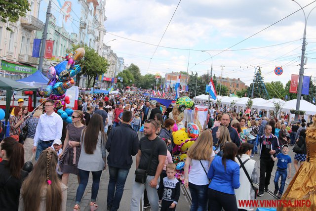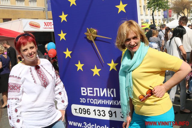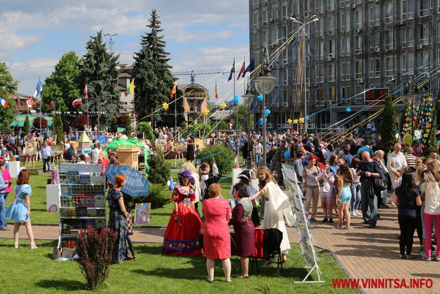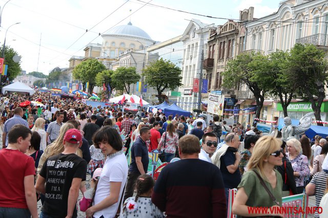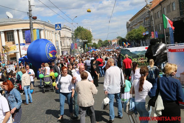 20 травня Вінниця святкує ювілейний День Європи. Центр міста перекрили для транспортних засобів. Сьогодні на вулиці Соборній розваги для будь-кого. Тут можна сфотографуватися на фоні пейзажів різних країн, придбати патріотичні прикраси і сувеніри.