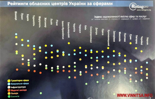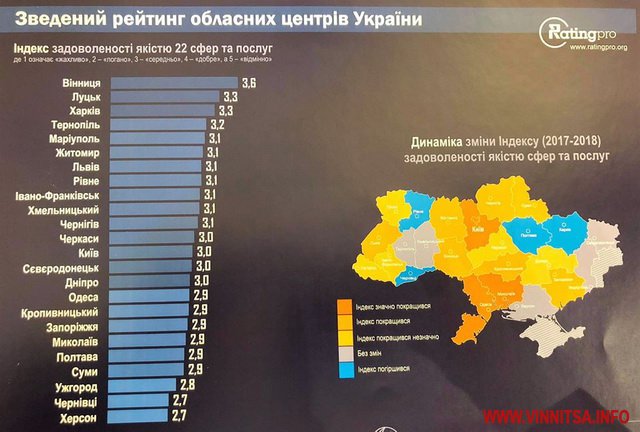 Опитування уже традиційно проводилось серед мешканців у понад 20 найбільших містах нашої держави. До речі, приємно, що у зведеному рейтингу міст в порівнянні з минулим роком у Вінниці покращились результати по індексу задоволеності якістю 22 сфер і послуг.