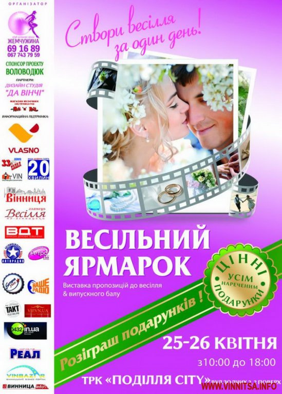Спростити свій вибір щодо того, яких весільних майстрів запросити створювати перше свято молодої сім'ї, щороку допомагає Жіночий клуб «Перлина». Вже вшосте у Вінниці відбудеться виставка-шоу «Весільний ярмарок 2015», 25-26 квітня з 10.00 до 18.00 в ТРЦ «Поділля Citi».