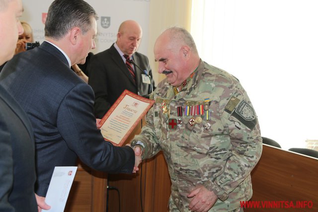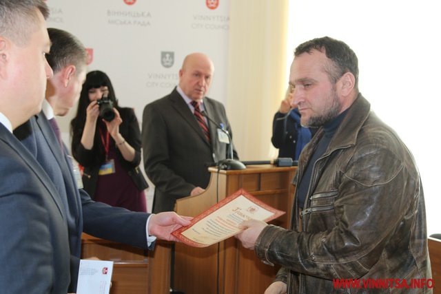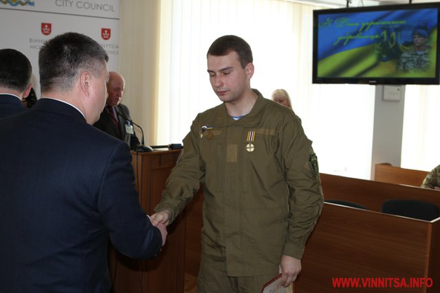 14 березня Україна вперше відзначає День добровольця. У Вінниці з нагоди свята привітали бійців, які першими вирушили на боротьбу з російською агресією. У мерії їм вручили квіти, почесні грамоти і премії.