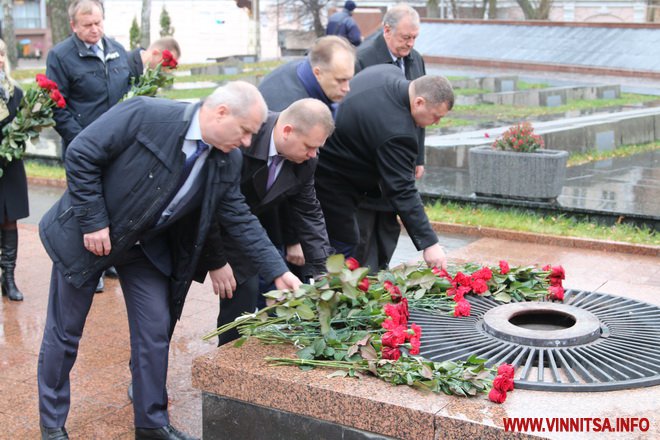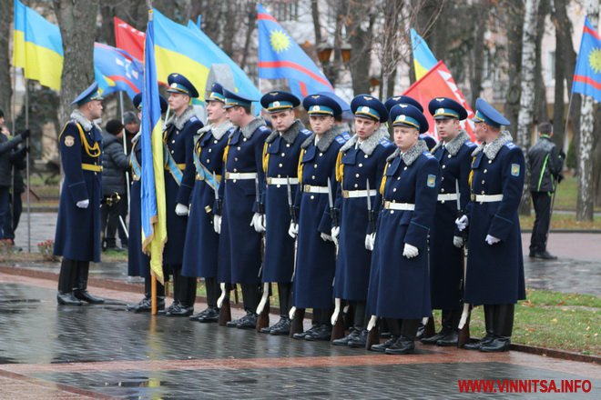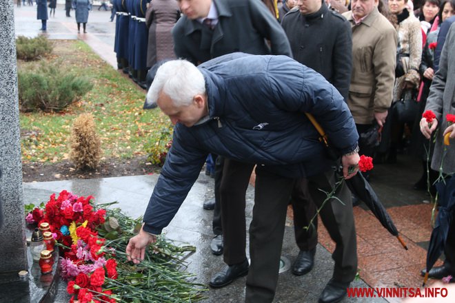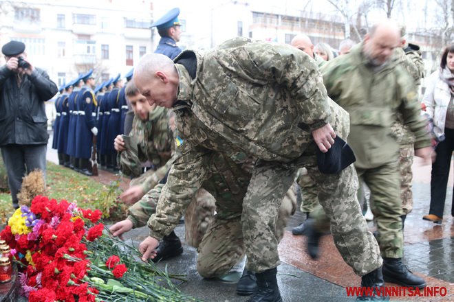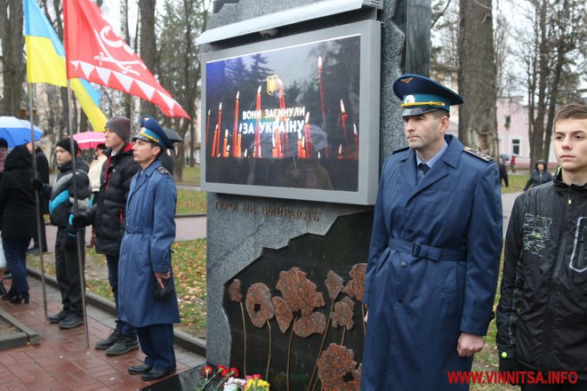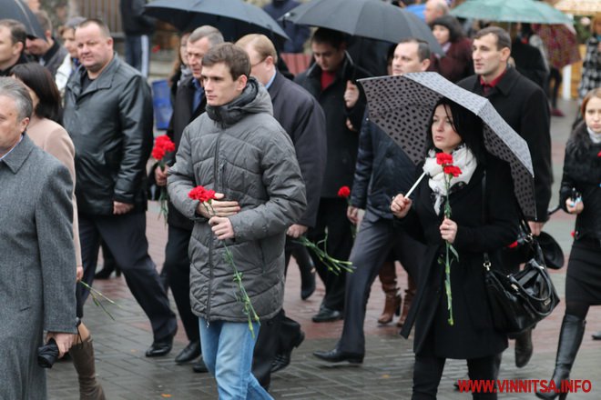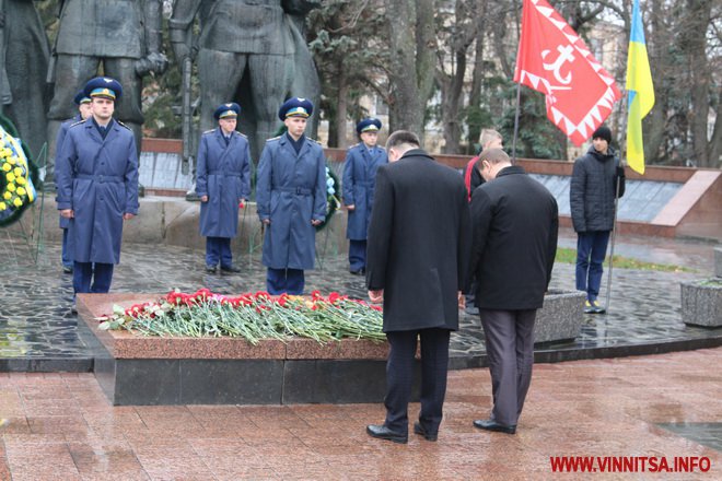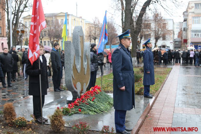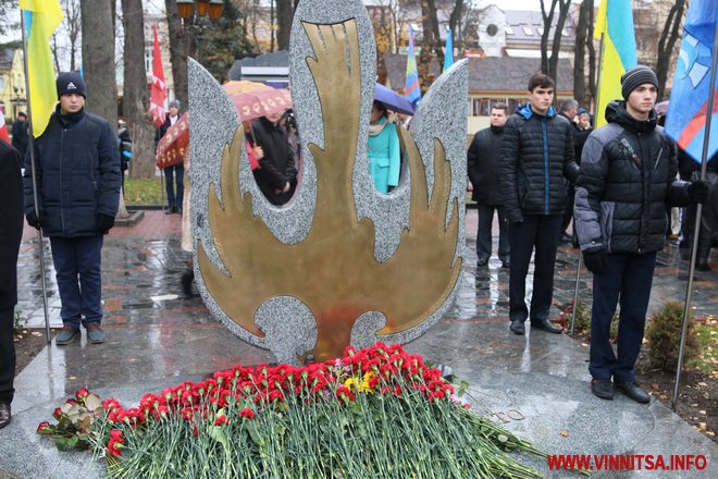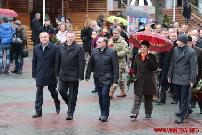 20 листопада у Вінниці відзначили День Гідності та Свободи. До пам’ятних знаків визволителям, героям АТО і Небесної Сотні несли багряні троянди і жовто-блакитні хризантеми.