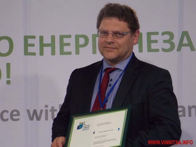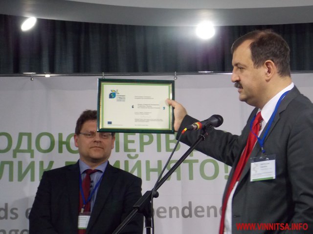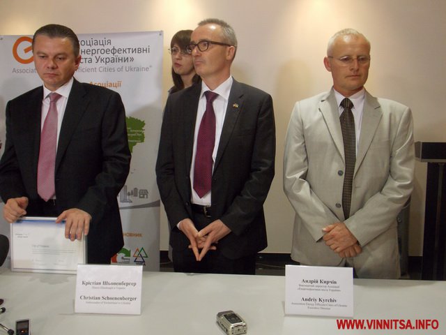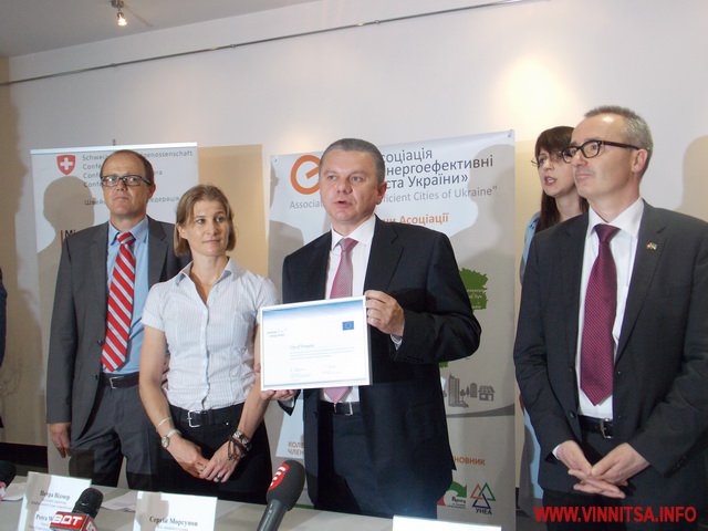 16 червня у Вінниці Надзвичайний і Повноважний посол Швейцарії в Україні Крістіан Шьоненберг вручив в.о Вінницького міського голови Сергію Моргунову Європейську енергетичну відзнаку. Наше місто поки що єдине серед міст пострадянського простору заслужило нагороду.