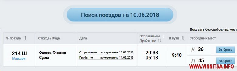 7 червня розпочали продаж квитків на поїзд сполученням «Суми - Одеса», який йде через Вінницю і Козятин.